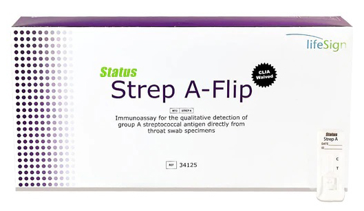 A rapid immunochromatographic assay for the detection of group A streptococcal antigen directly from throat swab specimens. The test kit features patented single-use reagent capsules and has market leading
